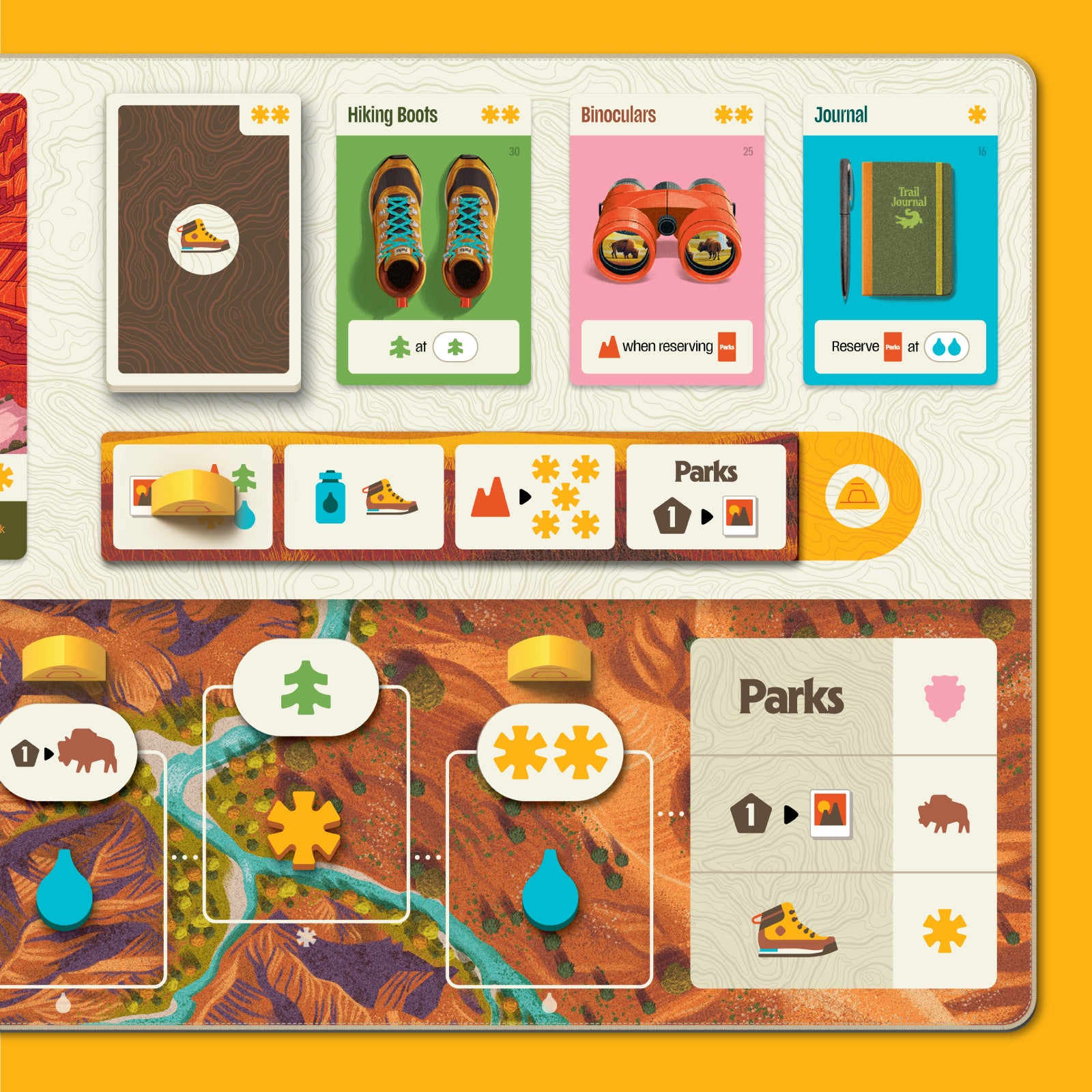 Welcome to the ultimate national parks board game experience. To create this enhanced edition of the classic game Parks, we took a close look at every possible detail to ensure that every move, every action, and every step brought the excitement of the U.S. National Parks to players like never before.